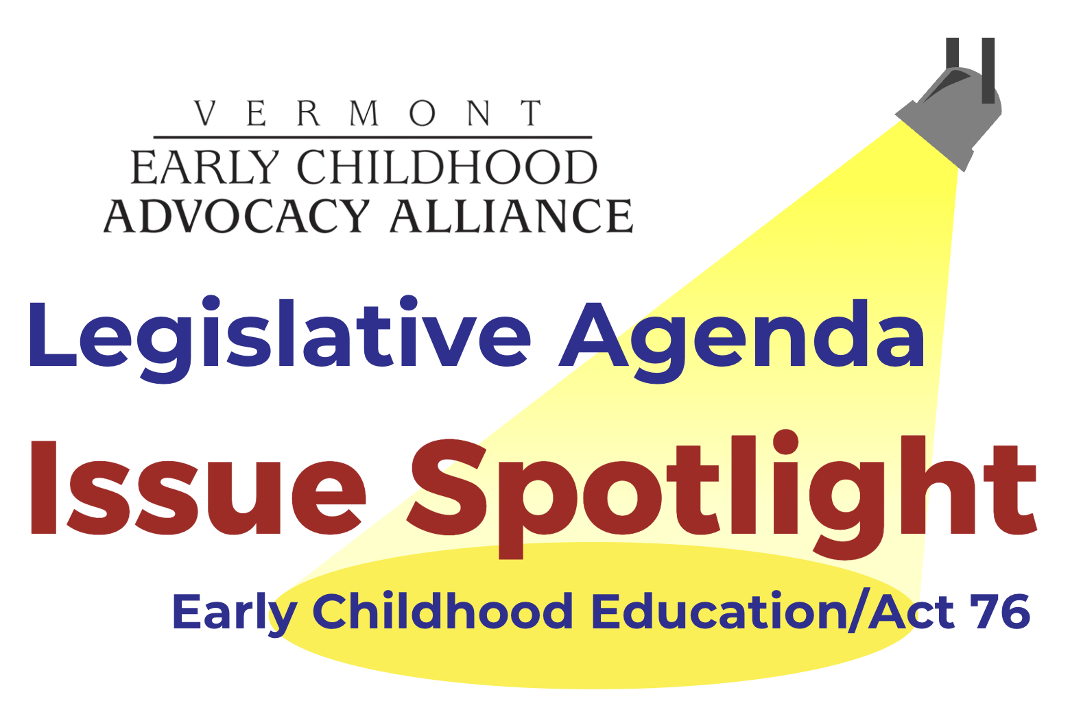| |  | Alliance ‘26 Legislative Agenda Issue Spotlight – Early Childhood Education/Act 76 – 2/23 In the coming weeks, the Alliance is hosting virtual Issue Spotlights that will focus on one or two issues from the Alliance’s 2026 Legislative Agenda. In discussions led by representatives from the issue’s Lead Organizations, participants will be able to ask direct questions and hear a brief legislative update. The next session will be held Monday, February 23, at 3:00 pm, and will focus on work this session being led by Let’s Grow Kids Action Network (LGKAN) to protect child care funding in the state budget, increase access and affordability for children and families, and strengthen the early childhood education workforce. Hosted by LGKAN, this session is a great opportunity to learn more about this important issue, where it stands in the Legislature, and how to get involved. Register on Zoom to receive the meeting link. | | | |  | BBF State Advisory Council Meeting – 2/23 The Building Bright Futures State Advisory Council (SAC) will be meeting virtually on Monday, February 23, from 1:30 to 3:00 pm. The meeting will include a discussion of the impacts of the grants distributed through the Vermont Early Childhood Fund, and plans for two federal grants recently awarded to Vermont including the one-year $12.7 million Preschool Development Grant Birth Through 5 (PDG B-5) grant which has a focus on data integration and systems change. Register on Zoom to receive the meeting link. | | | |  | Alliance Monthly Equity Discussion – “Love, Inclusion, and Trust at Northshire Day School” – 2/27 Join a group of peers and colleagues from the early childhood community to engage in sustained learning about anti-racism, equity, and inclusion. The Alliance hosts a monthly, salon-style Equity Discussion Group via Zoom. Our next session is coming up on Friday, February 27, at 1:00 pm. The discussion will be led by Laurie Metcalfe, the Executive Director of the Northshire Day School (NDS) in Manchester Center. Laurie will share how NDS has been engaged in ongoing work around Love, Inclusion, and Trust (LIT) framework, and how this has been a meaningful entry point for sustained learning about equity and belonging within their school community. Come share in a conversation about equity that is applicable to all ages, provides guidance, and offers hope as we navigate complex times. Register on Zoom to receive the meeting link. | | | |  | WOYC Grants – Applications Due 2/27 The Vermont Association for the Education of Young Children (VTAEYC) is offering $500 grants for events during Week of the Young Child (WOYC) this year. To be eligible, at least one person on the planning team must be a current member of VTAEYC; the event/activity must take place during WOYC, April 11-17, 2026; and the applicant must be partnering with at least one other Early Childhood Education organization (i.e. parent child centers, another ECE program, BBF early childhood networks). For more information and to apply, visit the VTAEYC website. Application submission closes February 27. Chosen recipients will be notified by March 6. Visit the NAEYC website for more information about the WOYC and resources to help plan an event. | | | |  | Vermont Kindergarten Conference – 3/25 Registration is open for the 2026 Vermont Kindergarten Conference on Wednesday, March 25, at the DoubleTree in South Burlington. This year’s theme, "Play, Inquiry, and Imagination: How Early Learning Shapes Lifelong Thinkers," promises to inspire and empower educators and explore kindergarten expectations and practices that support smoother transitions for children entering school. Visit the conference website for more information and to register. | | | |  | | | Register for ECDL ’26! Join us in person for Early Childhood Day at the Legislature (ECDL) on Wednesday, March 11, 2026, at the Capitol Plaza Hotel in Montpelier To register a group larger than five, please contact Taylor Hughey, Alliance Outreach Manager, at taylor@vecaa.org. Scholarships and professional development are available. Contact taylor@vecaa.org with any questions. Visit the Alliance website for more information. | | | | | |  | | | | | The Vermont Early Childhood Advocacy Alliance is a statewide coalition formed in 2000 of early childhood professionals, parents, organizations, businesses, and strategic partners committed to improving public policies that impact young children between birth and age eight in the areas of health, safety, food security, economic security, and early care and education. The Alliance crafts an annual Legislative Agenda in partnership with early childhood organizations, provides year-round advocacy support, and facilitates meaningful interactions with policymakers at key times during the decision making process. | | | | 7 School Street | Montpelier , Vermont 05602 vecaa.org The Vermont Early Childhood Advocacy Alliance is a program of the Vermont Community Loan Fund. | | | | | | | | | |