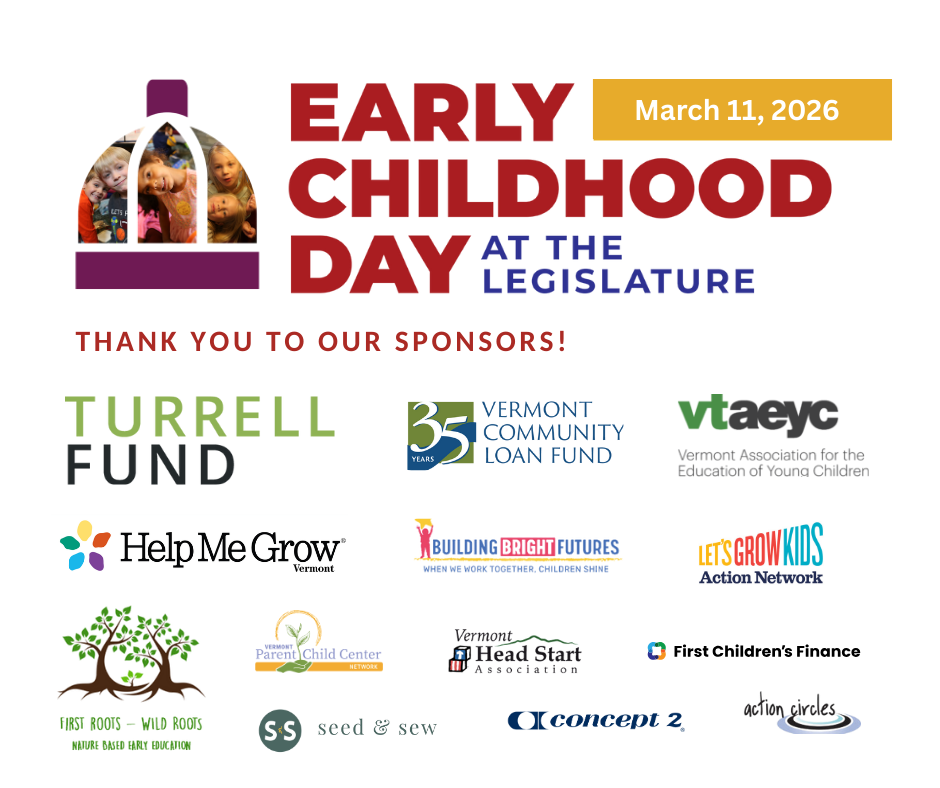 The Vermont Early Childhood Advocacy Alliance is a statewide coalition formed in 2000 of early childhood professionals, parents, organizations, businesses, and strategic partners committed to improving public policies that impact young children between birth and age eight in the areas of health, safety, food security, economic security, and early care and education. The Alliance crafts an annual Legislative Agenda in partnership with early childhood organizations, provides year-round advocacy support, and facilitates meaningful interactions with policymakers at key times during the decision making process. | |